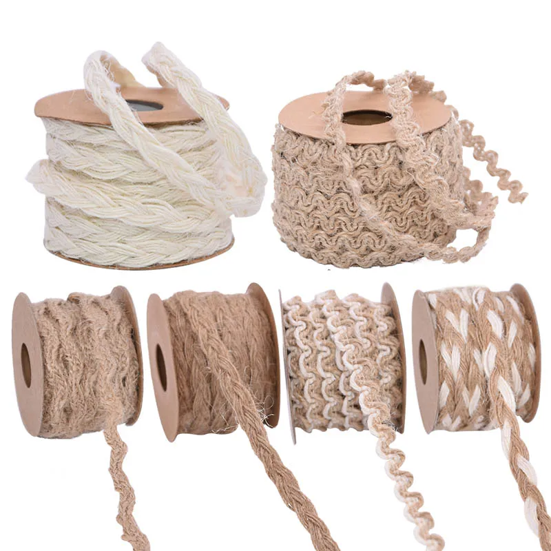 5 м 5-10 мм Плетеный джутовый шпагат пеньковый шнур веревка из натуральной мешковины Hessian лента в рулоне для DIY украшения свадьбы дня рождения ...