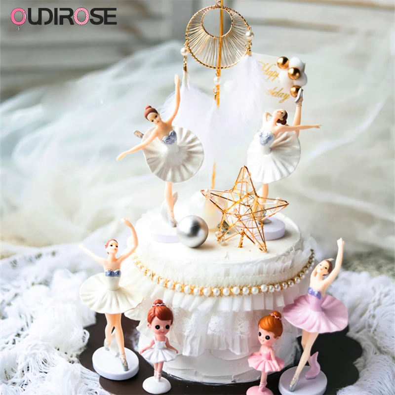 Балерины для девочек танцор торт украшения в стиле «Ловец снов»; перо принцессы день рождения торт фигурки жениха и невесты; десерт на вечер...