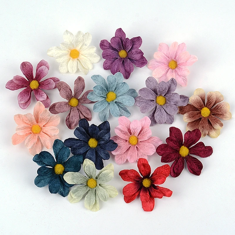 10 шт./лот, 6 см, Ретро стиль, ромашки, цветы, мини бархат, искусственный цветок, свадебное украшение, сделай сам, венок, скрапбук, ремесло, искусственные цветы
