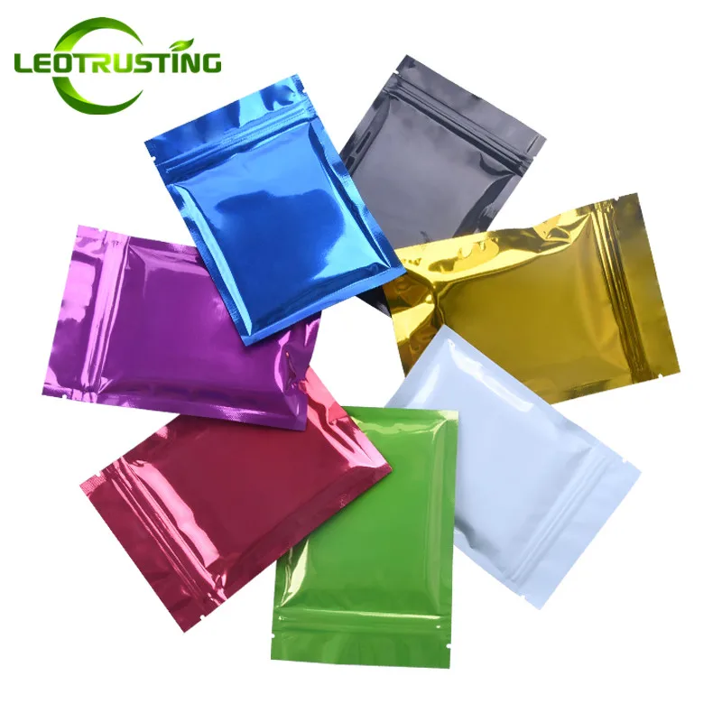 Leotrust 100 шт 7 видов цветов Глянцевая алюминиевая фольга Ziplock сумка с плоской подошвой блестящая Фольга упаковочная сумка для образца мешок для порошка подарочные пакеты