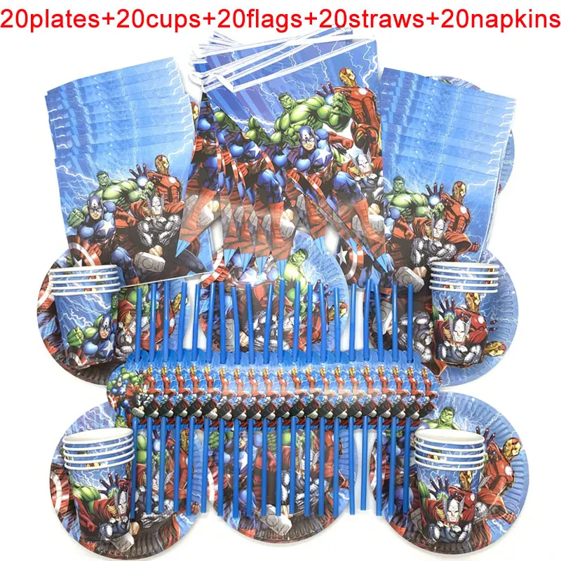 100 шт./лот 20 человек с днем рождения Дети Дисней Мстители детский душ украшение набор баннер соломинки чашки тарелки поставщик