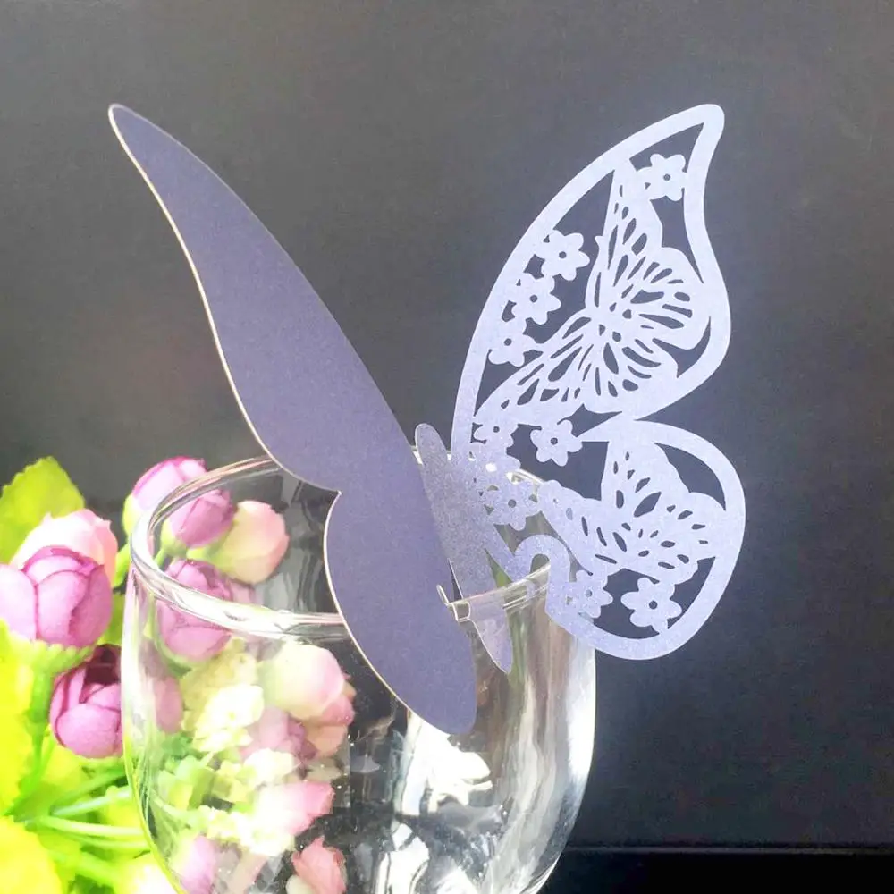 20 шт./лот Лазерная резка бабочки бумажная карточка/карточка сопровождения/карточка чашки/карточка бокала вина для украшения свадебной вечеринки