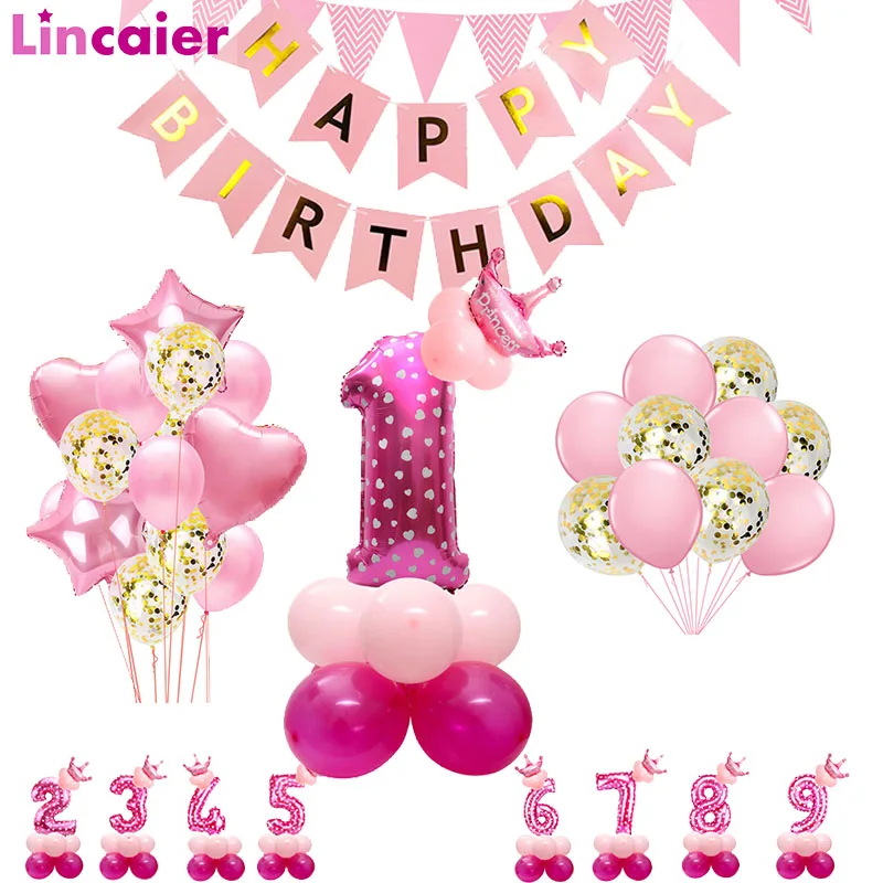 Розовый с днем плакат "с днем рождения" воздушные шарики для украшения для маленьких девочек детский праздничный костюм поставки взрослая г...
