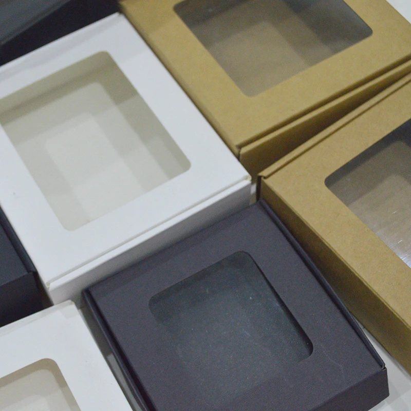 10 шт Большой черные картонные коробки для упаковки большой белый картон коробка с окном и крышкой коричневые коробки из крафт-бумаги подаро...