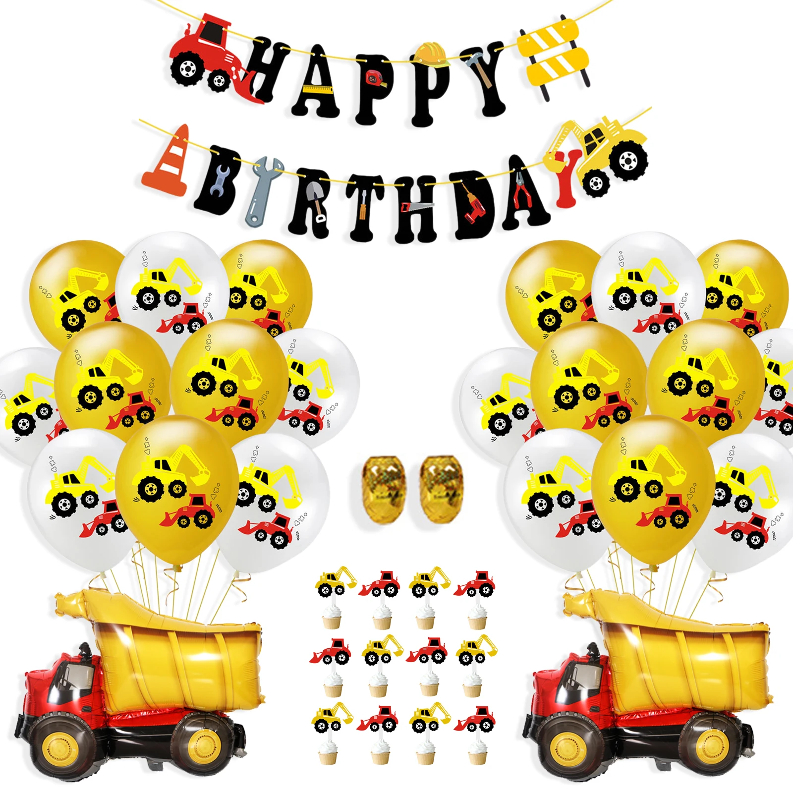 Мультфильм экскаватор латексный воздушный шар торт Топпер строительство автомобиля баннер грузовик воздушный шар автомобильные темы День...