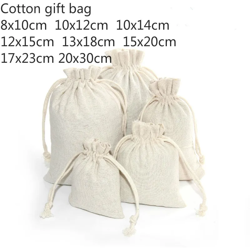 10 шт./лот 8 размеров льняной Хлопковый мешок Косметика подарки упаковка ювелирных изделий сумки симпатичное, на шнурке Свадебная сумка для к...