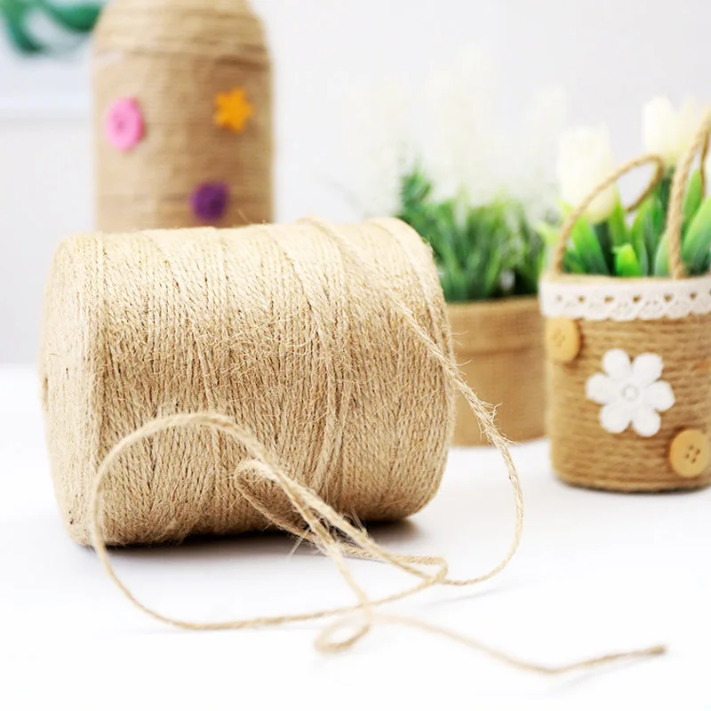 Натуральная Веревка DIY для свадьбы, дня рождения, свадьбы, украшения из ротанга, подарочная упаковка букета, веревка 2 мм JJ291