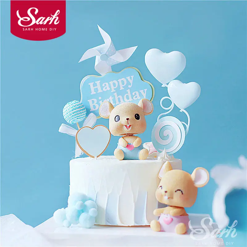 Розовый синий качающаяся головка мышь украшение сердце ветряная мельница кисточкой облака для дня рождения торт Топпер для вечерние присп...