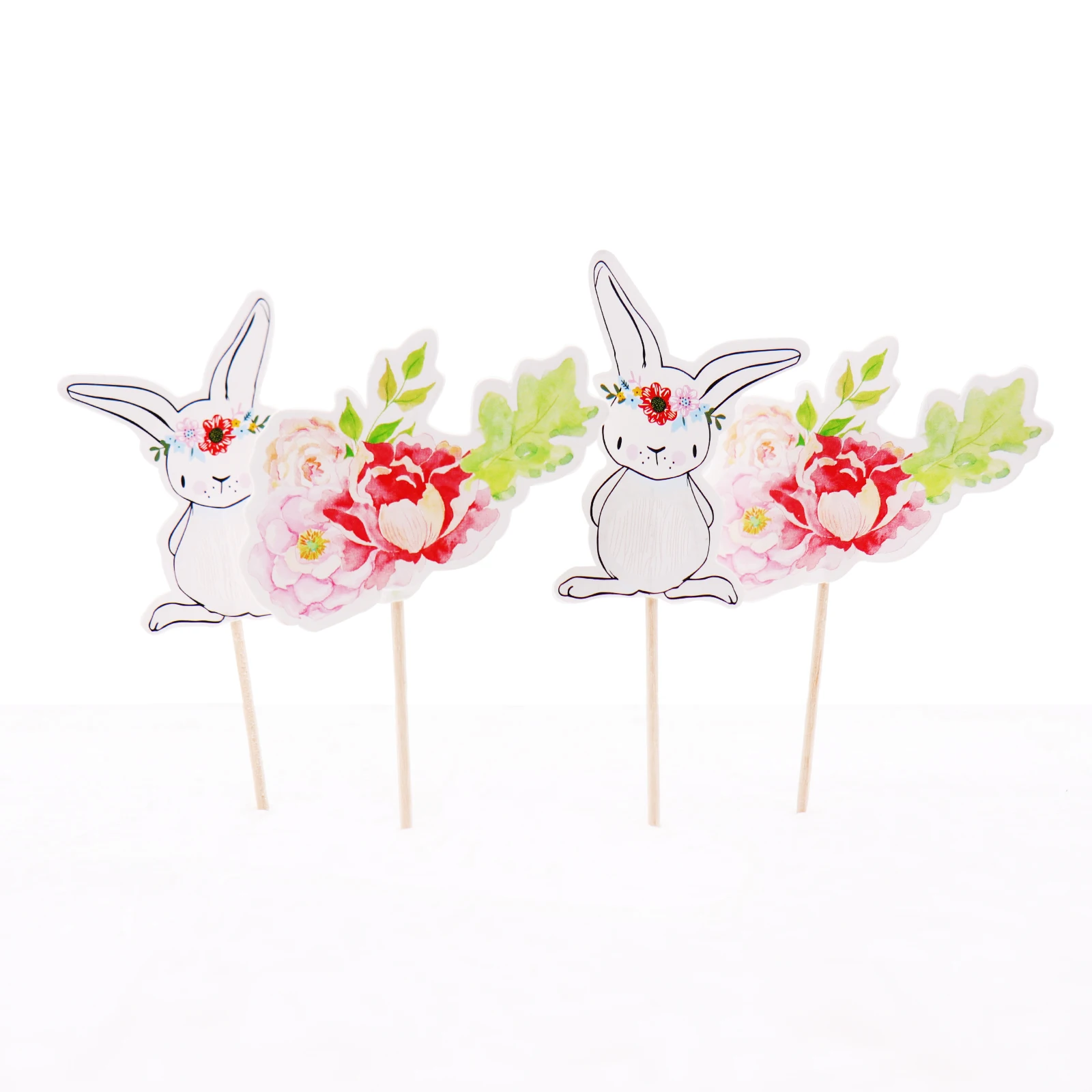 24 шт./лот украшения для дня рождения с изображением кролика, кекса, для детей, для вечеринки, для девочек, прекрасный бумажный цветок, торт, флаг