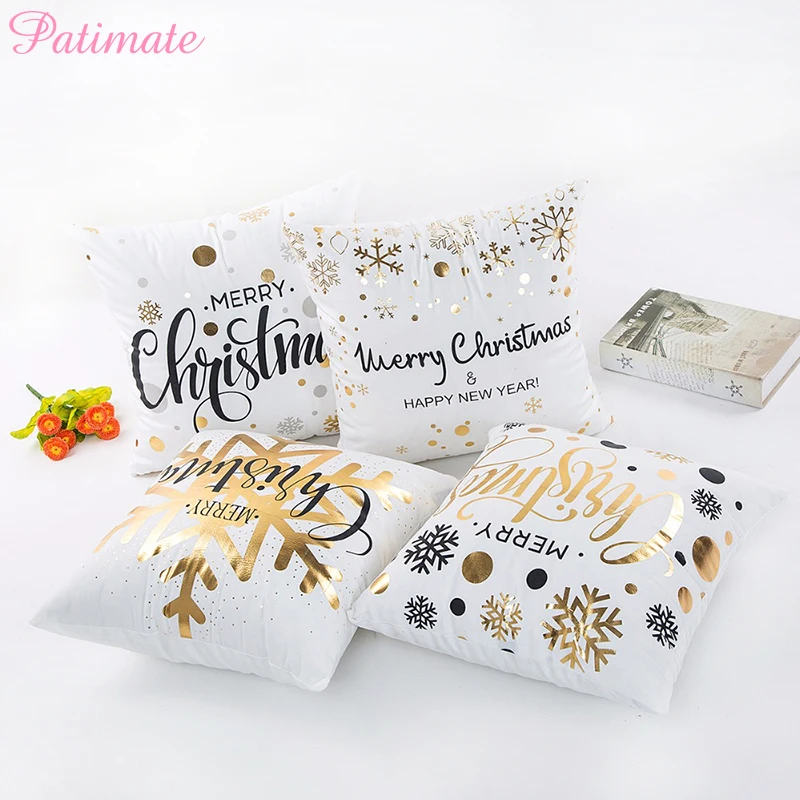 PATIMATE 45x45 см хлопок белье Чехлы Рождеством печатных золотые буквы Наволочка украшения для Рождественское украшение для дома