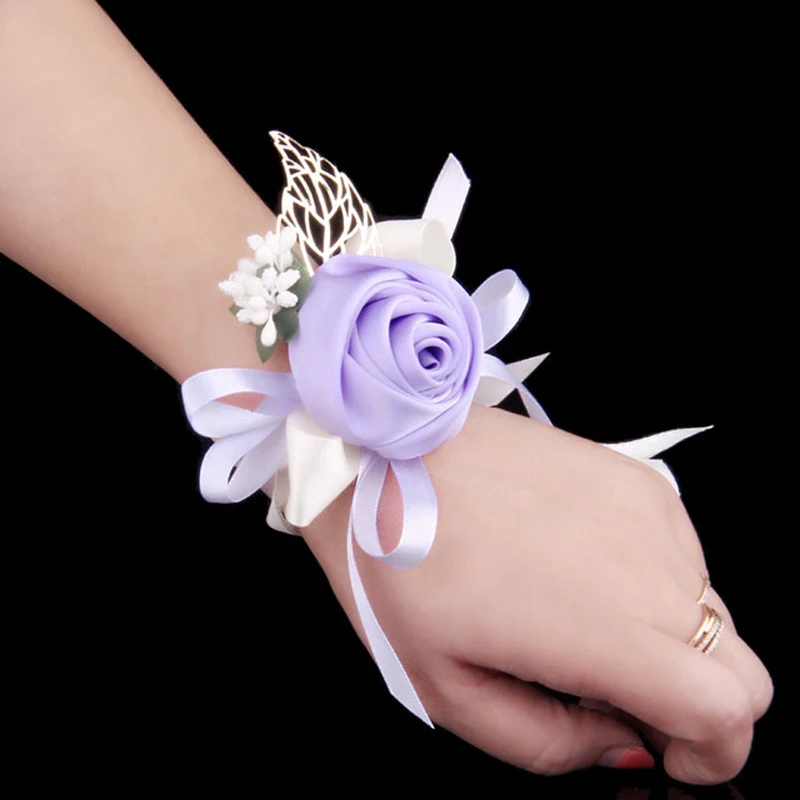 5 шт./упак. Свадебные запястье руки цветок атласная роза ручной работы с цветочным рисунком браслет Свадебная вечеринка на выпускной, подруж...