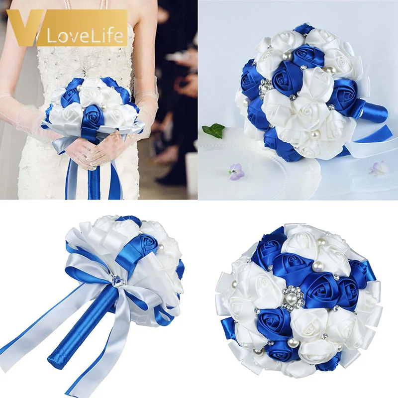 1 шт. Королевский синий пенопласт цветок невесты букеты Свадебные украшения лента Романтические Свадебные цветы Свадебные букеты