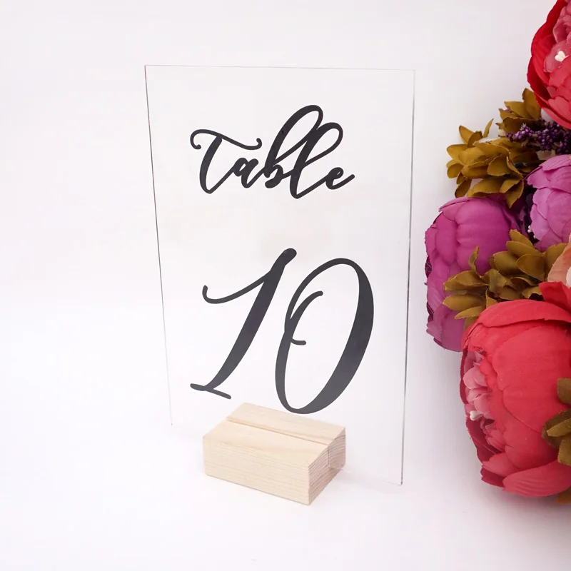 Креативная Свадебная вечеринка, вечерние таблички, прозрачная акриловая доска с деревянным основанием, украшение стола, держатель номера