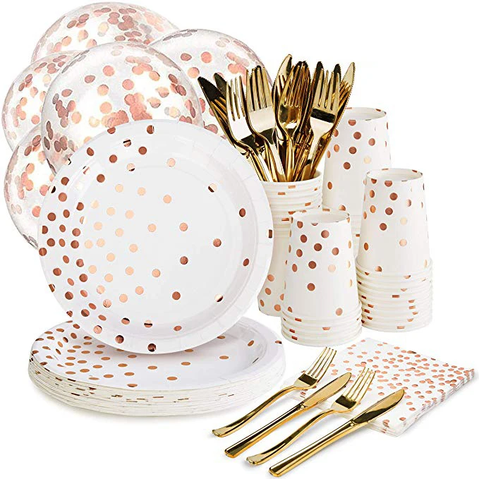 Розовое золото, бумажные свадебные принадлежности, элегантные одноразовые стаканчики для напитков, украшения на день рождения, подходят дл...