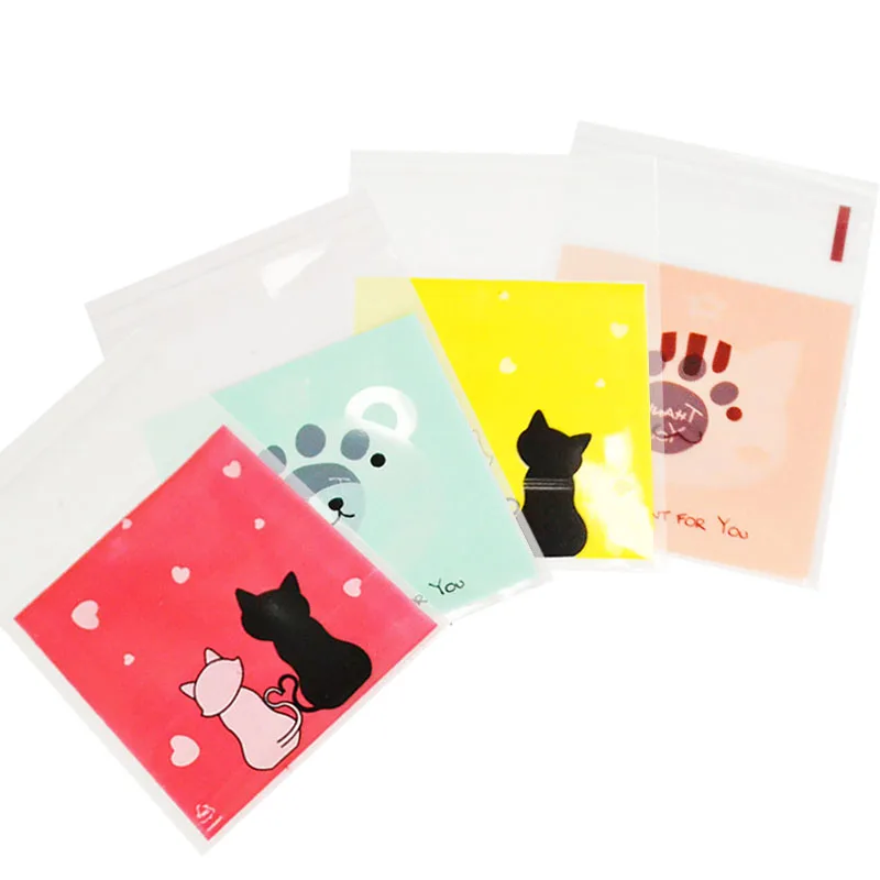 50-100 шт. 7*7 см милый мультфильм пластиковый пакет Свадьба День рождения Сувениры Печенье Подарочная упаковка для конфет Сумки OPP Self клейкий м...