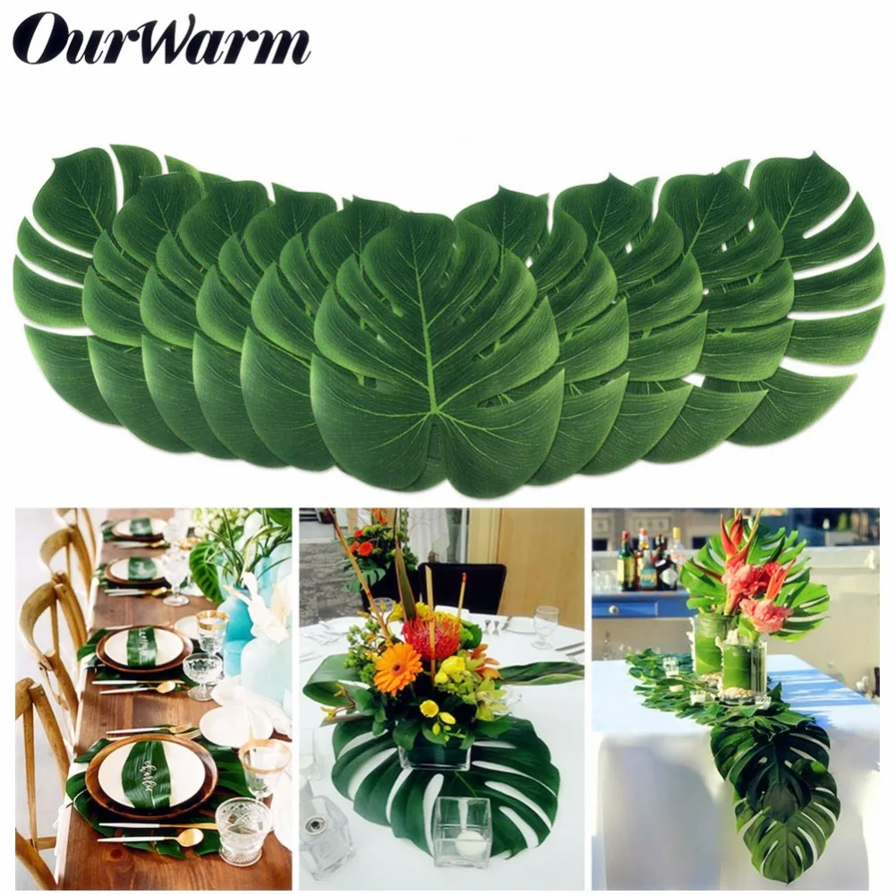 12 шт 35 см Гавайи вечерние украшения Искусственные Поддельные пальмовых листьев посуда завод сад свадебный стол брак вечерние украшения
