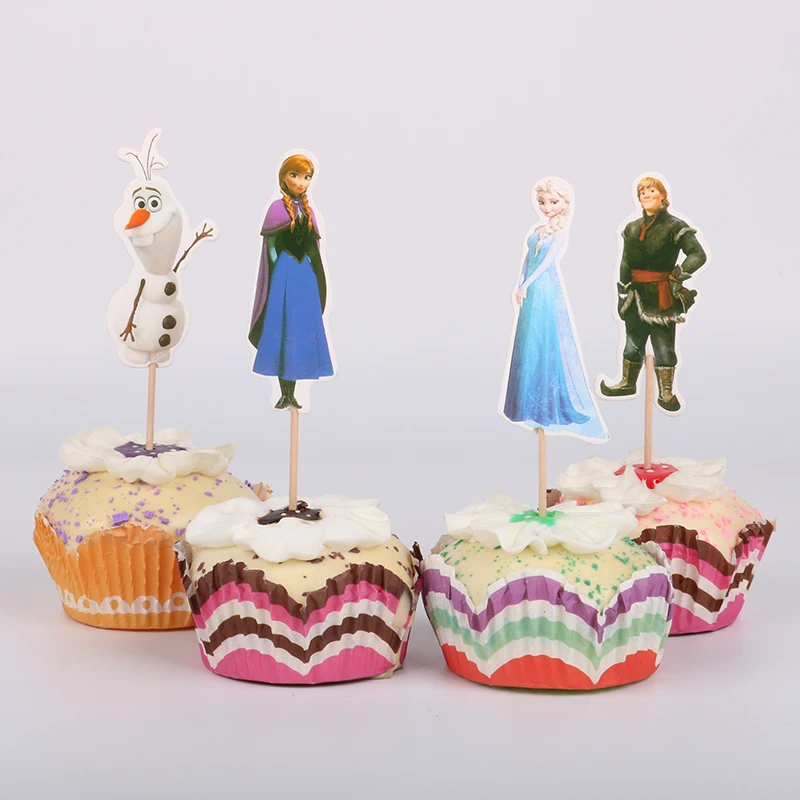 24 шт. Эльза Анна Cupcake Toppers выборка девушки дети День рождения украшения Дети Принцесса Свадебные украшения торт топперы
