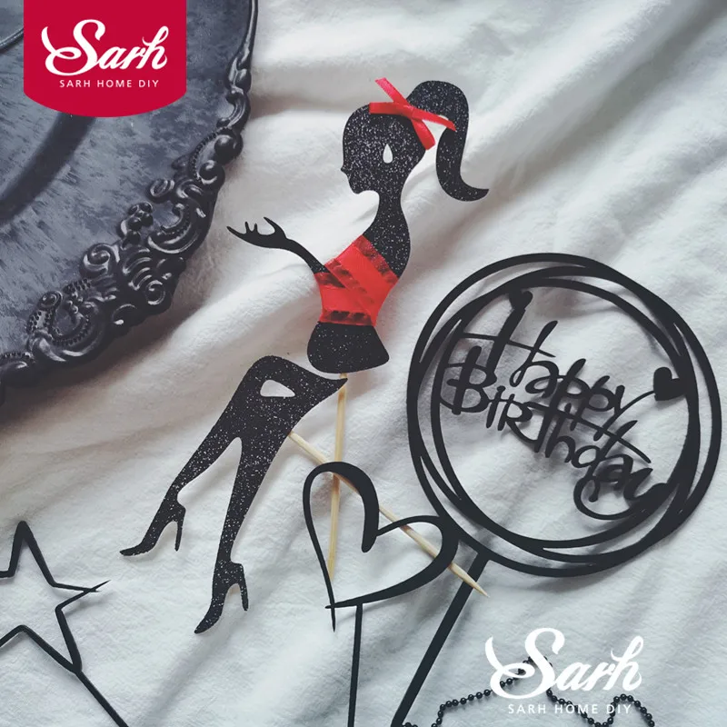 Элегантные леди Усы Top Hat лук-узел Лазерная "с днем рождения" торт Топпер для вечерние украшения десерт прекрасные подарки