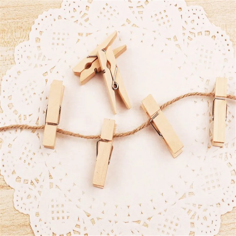 50 шт 2,5 см мини свадебное дерево клипы одежда Фотобумага Peg Pin прищепка ручной работы клипы вечерние украшения