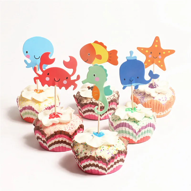 24 шт., морские животные, морская закуска, выбор торта под морем, кексы для детского душа, украшения для детского торта на день рождения