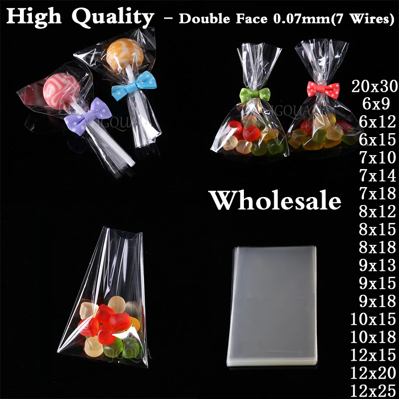 Прозрачный маленький пластиковый пакет, плоский открытый Топ, Свадебная вечеринка, ОПП, подарочная упаковка, упаковка для печенья, конфет, упаковка украшений, целлофановый мешочек