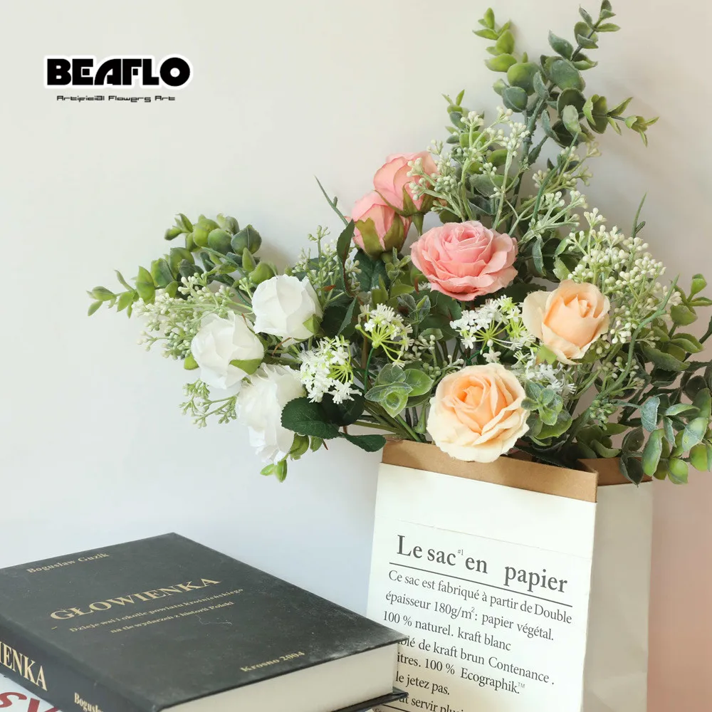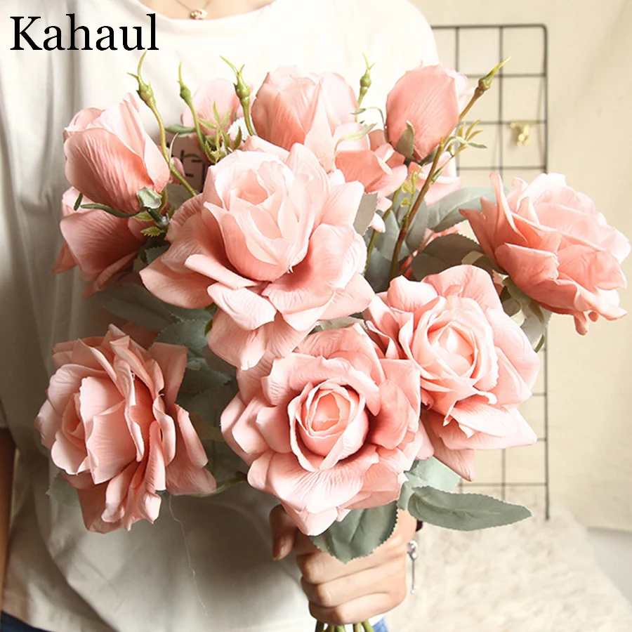 1 букет, искусственные розы, цветы, гибридный шелк, ручная работа, Искусственный Пион, свадебный цветок, свадебное украшение