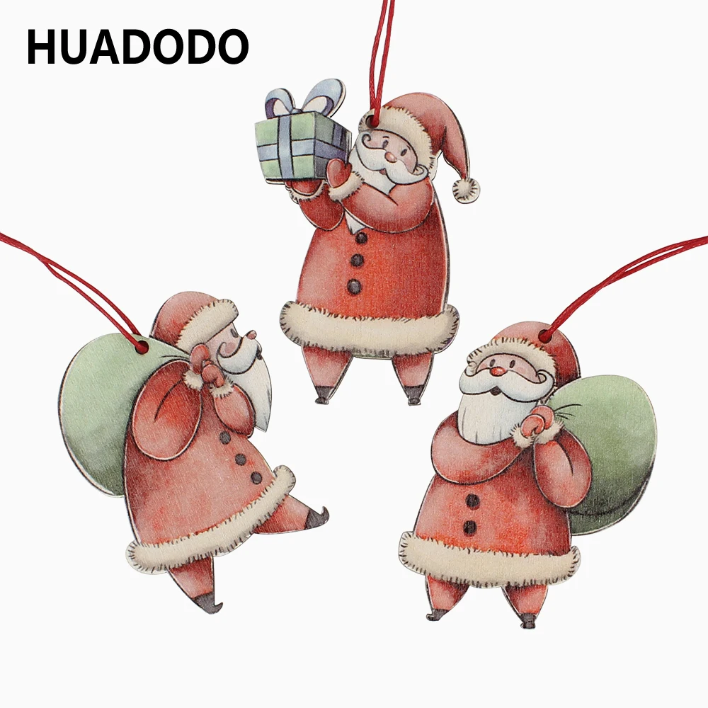 HUADODO 3 шт. Санта Клаус рождественские деревянные декорации Подвески Украшения для Елочная игрушка в виде елочки игрушки новогодний декор по...