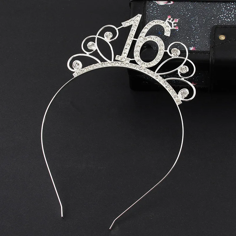 Сладкий 16 день рождения корона диадема со стразами повязка на голову для девочек аксессуары для волос 16 поздравительная открытка украшения...
