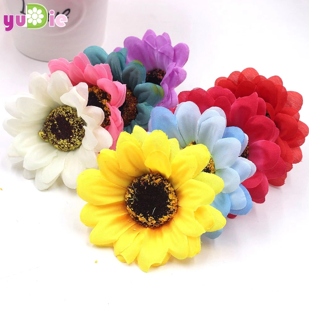Искусственные цветы, 10 шт., 6 см, высокое качество, шелковые подсолнечники, Гербера, украшения для дома, сделай сам, венок, искусственные цветы для скрапбукинга