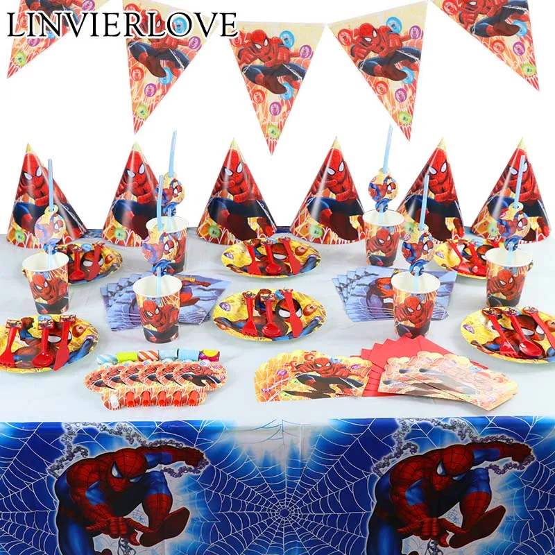 1 Набор мультфильм на тему Человека-паука одноразовая посуда набор тарелок салфетки баннер день рождения конфеты коробка детский душ вечерние принадлежности для декора