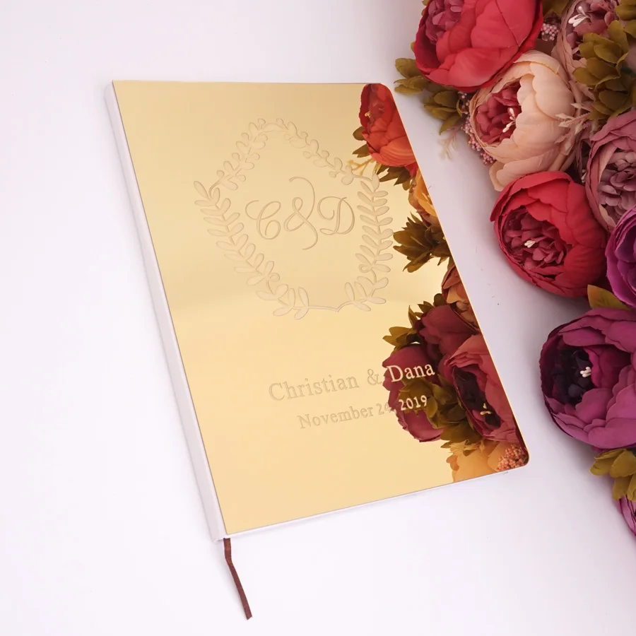 Персонализированные Engravced акриловое зеркало Свадебный Гостевая книга Фирменное передняя крышка невесты жених и невеста имя стилизованный ...