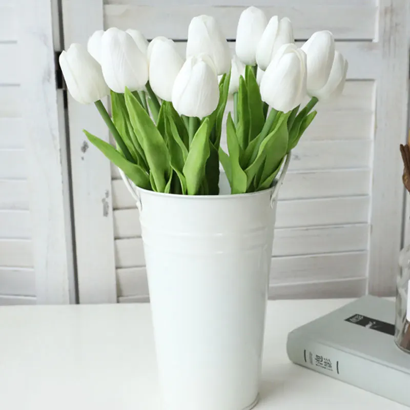 20шт настоящие касания белые Искусственные тюльпаны для украшения дома 34 см PU Латекс искусственные тюльпаны Искусственные Свадебные цветы ...