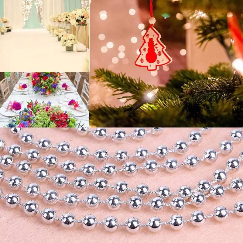2,7 м Серебряная цепочка из бисера, гирлянда, украшения для рождественской елки, жемчужные бусы, цепочка, подвесное украшение, рождественские...