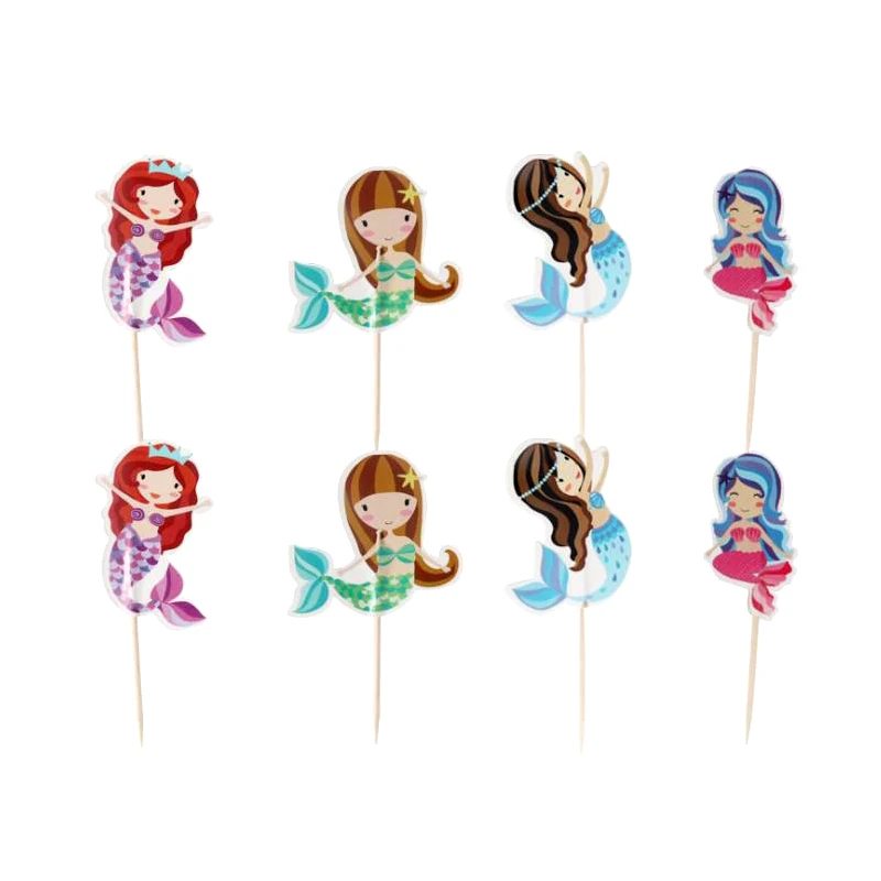 Русалка тема торт Топпер украшения счастливая предродительная Вечеринка Дети девушки для вечеринки по случаю Дня Рождения украшения для капкейков с палочками 24 шт