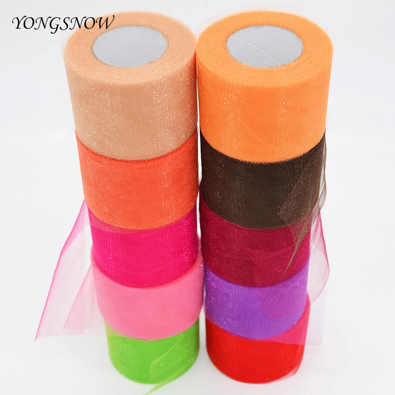 Блеск Sheer Кристалл Тюль ролл 25 ярдов 5 см флэш Косметическая Пудра "песочные часы" пачка органзы Лазерная DIY ткани тюль крафтовые украшения на...