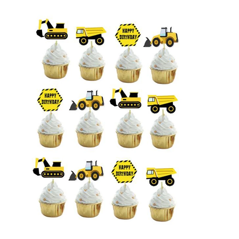 12 шт./компл. милые АВТОМОБИЛИ в виде пирожного в чашке с топперы медиаторы с днем рождения мальчик строительных машин украшения для торта дл...