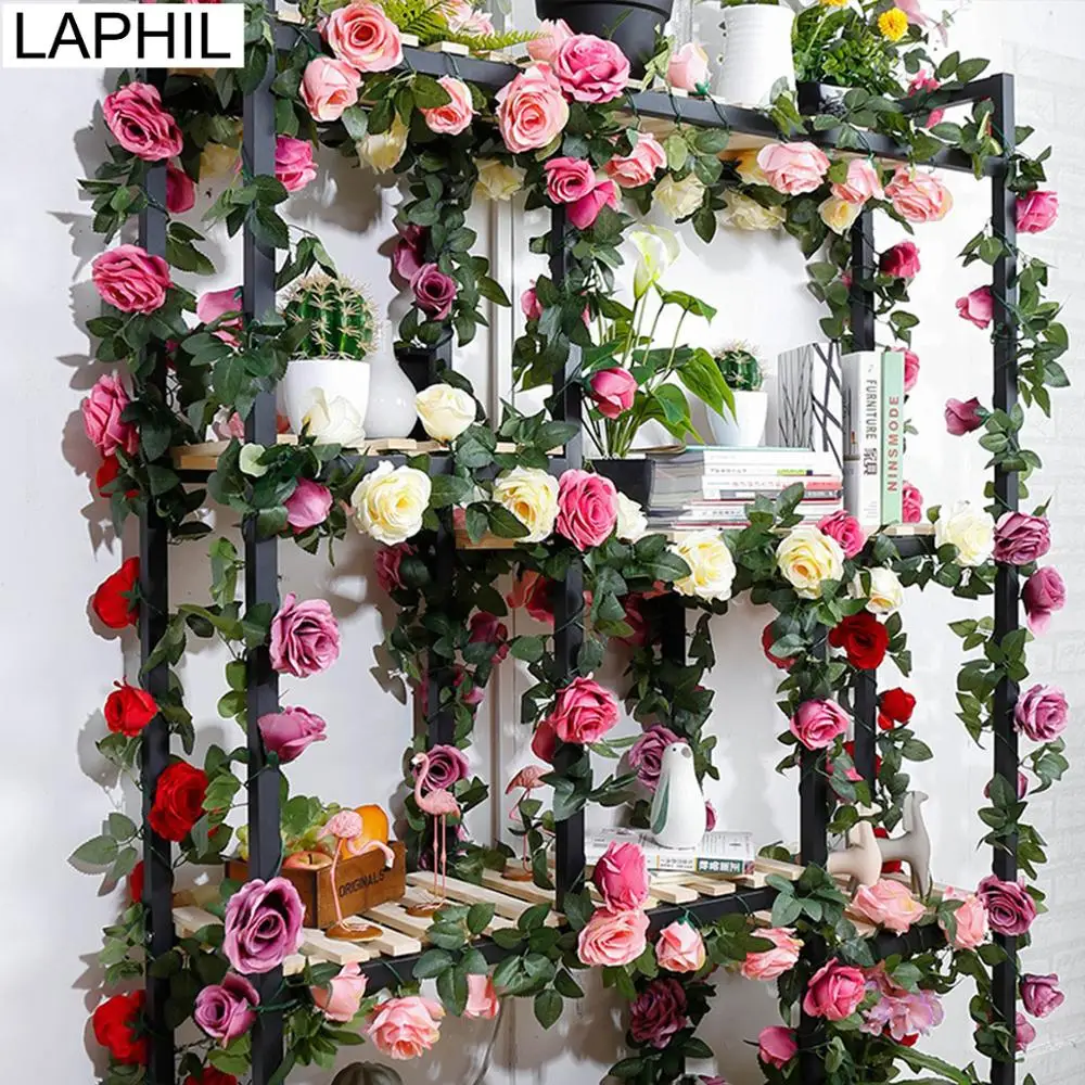 LAPHIL 230cm Silk Artificial Rose Vine Rattan Hanging Rose Flower Garland for Romantic Wedding Party Home Decoration Fake Flower