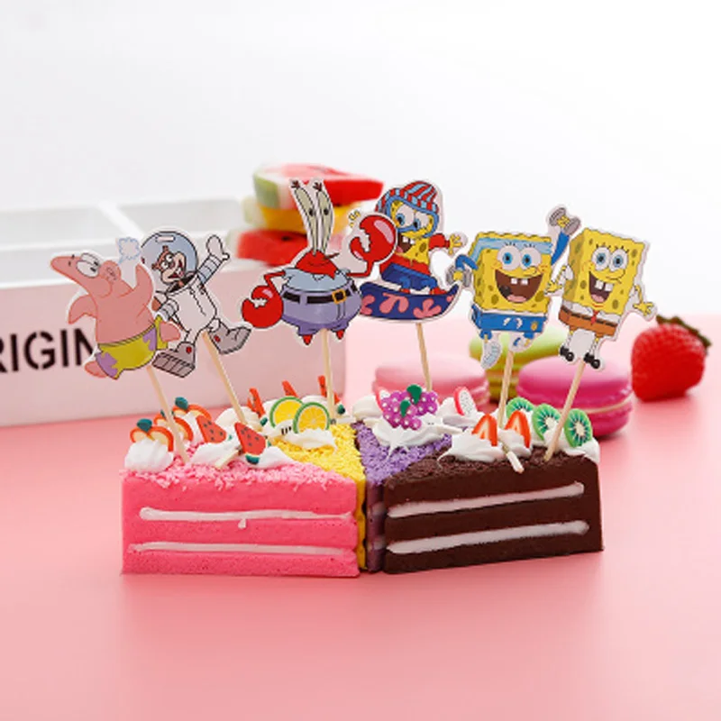 24 шт./лот губка для украшения вечеринки на день рождения Боб тема кекс топперы с палочками детский душ Дети Мальчики Сувениры Торт Топпер