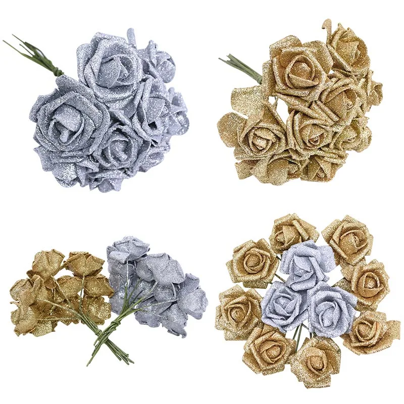 6 см Новые блестящие Пены Искусственный цветок розы Букет невесты Свадебные украшения вечерние торт подарок коробка декоративный искусственный цветок венок