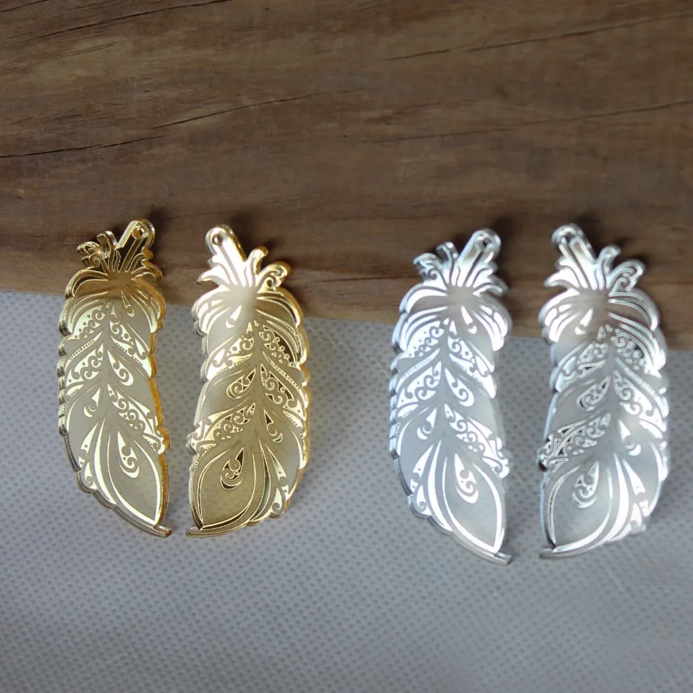 Мм (2 цвета, 20 шт./лот) 60 мм акриловые перья серьги украшения подарок золото и серебро зеркало лазерный вырез 2,4 "-AC1423AKO