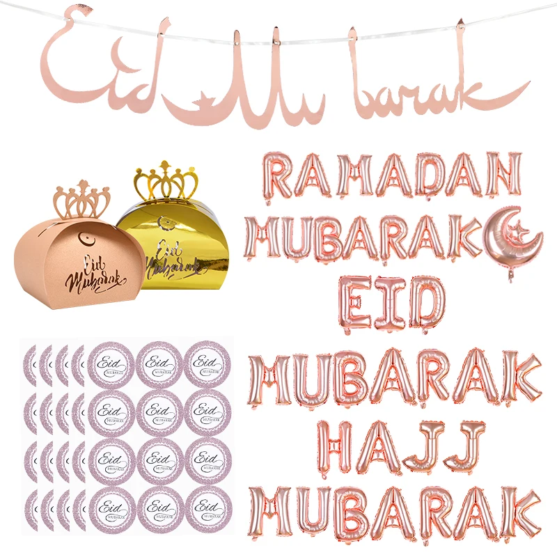 Рамадан ИД украшение Мубарак розовое золото черный Мубарак баннер гирлянда исламский мусульманский фестиваль украшения шар подарочные принадлежности