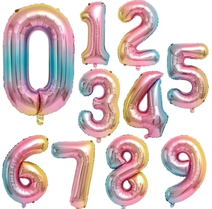 32 дюймов градиентный номер надувной шар из алюминиевой фольги Радуга цифра День рождения украшение фигурка для ребенка свадьба детский душ...