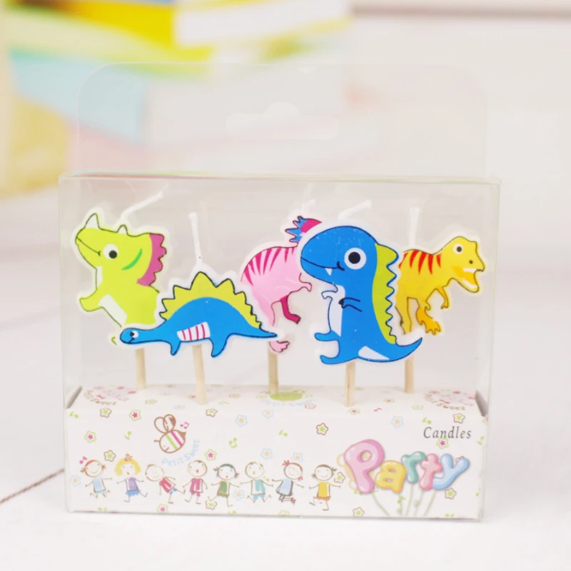 5 pcs Торт Декор с рисунком «динозавр» для мальчиков мультяшная свеча Happy День рождения поставки Дети пользу для фигурки жениха и невесты; Кек...