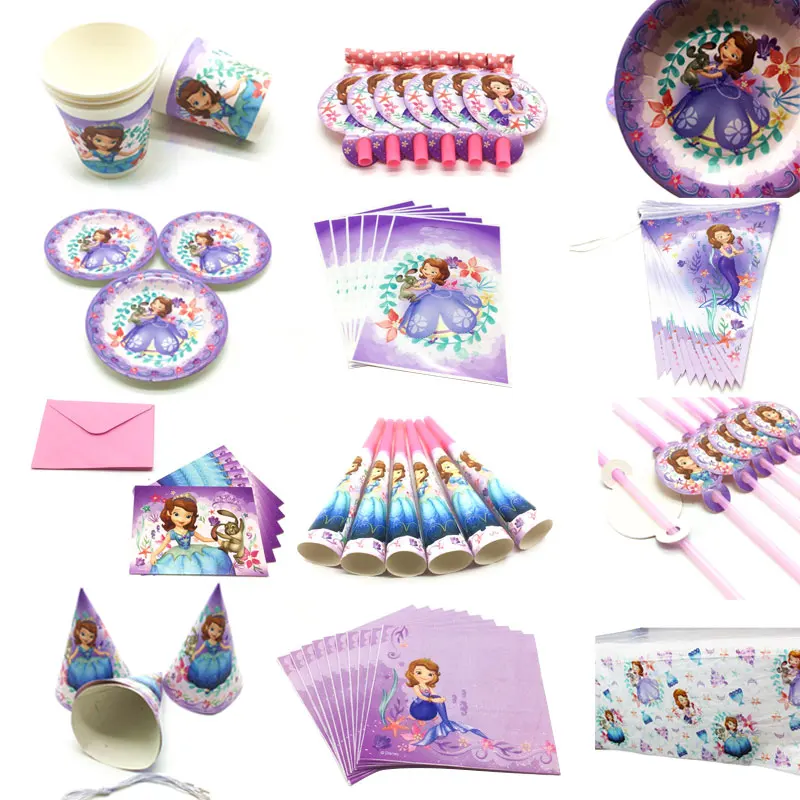 Диснеевская Принцесса София, принадлежности для украшения вечеринок, одноразовая посуда для девочек, бумажные стаканчики и тарелки, Набор принадлежностей для вечеринок Tabecloth