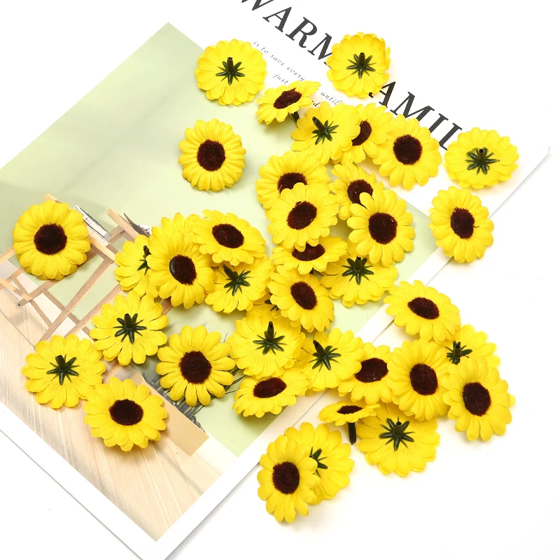50 шт./лот 2,5/3/3 см Мини Шелковый Подсолнух искусственные головки цветов, украшение для свадьбы, дома, украшения DIY ВЕНОК искусственные цветы д...