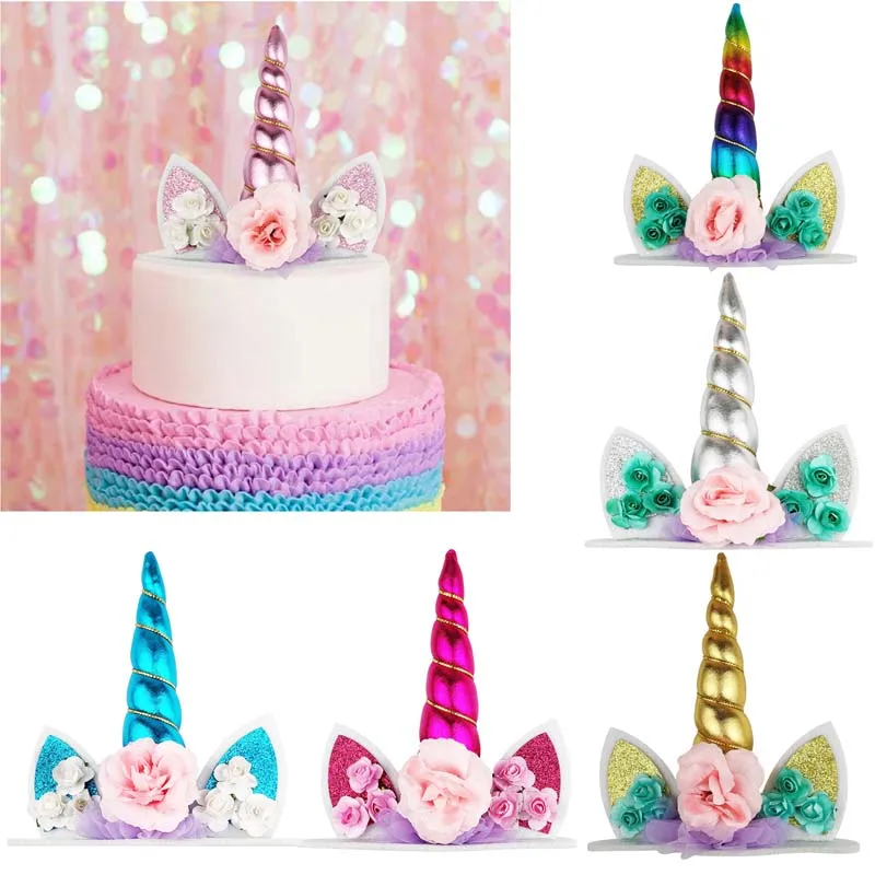 Золотой Единорог Рог торт Топпер День Рождения украшения Дети украшение для свадебного торта Baby Shower поставки Unicornio торт топперы
