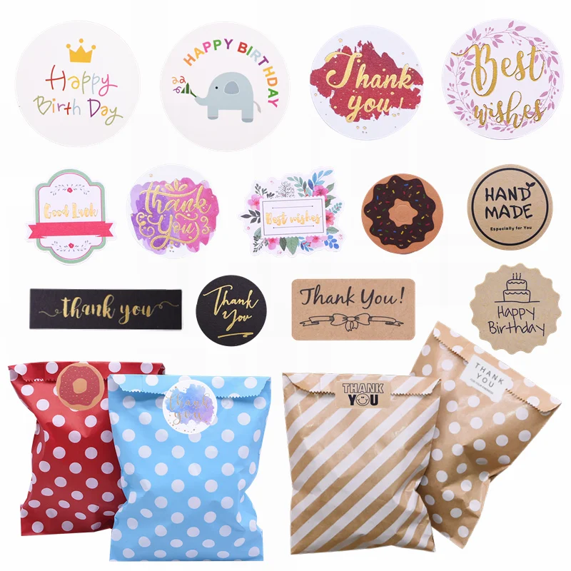 Многоцветный бумажный пакет этикетка Спасибо С Днем Рождения Печать стикер для свадьбы День Рождения Вечеринка ручной работы ремесло накл...