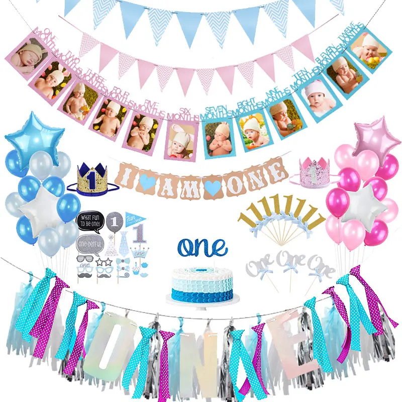 Baby Shower первый день рождения ребенка украшения мальчик девочка номер один баннер из воздушных шаров мой первый 1 год 1 вечерние украшения