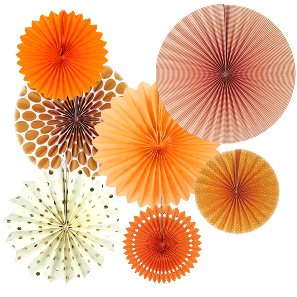 Набор из 7 оранжевых тем Сделай Сам бумага для рукоделия бумажные вентиляторы розетки фото фон для дня рождения свадьбы детский душ подвесные украшения для вечеринки