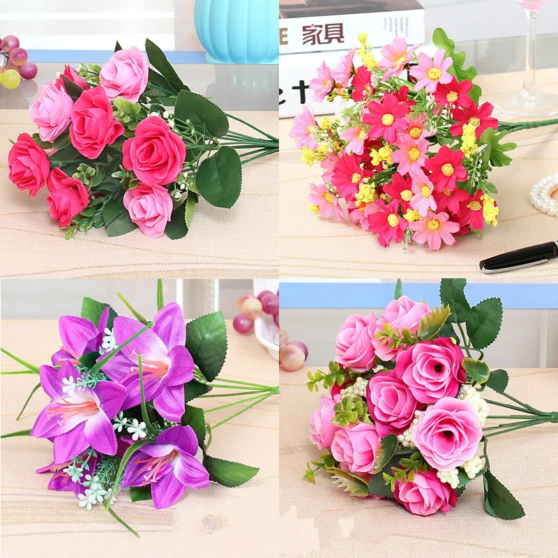 Моделирование Шелковая Роза цветок Букет DIY домашние вечерние свадебные наклейки на автомобиль букет невесты подарок на день Святого Вален...
